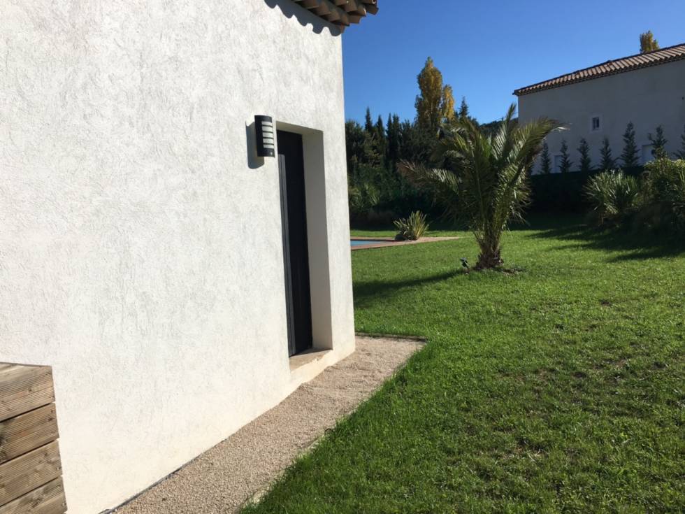 Cette magnifique villa contemporaine, d'une surface habitable de 170 m² environ, qui est située à Bouc Bel Air, à été réalisée avec des matériaux de grande qualité, les menuiseries, en ALUMINIUM brossé, est d'origine 100% France, posé par la société TECHPOSE.